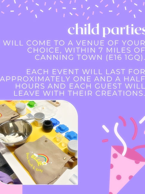 Looking to celebrate a special occasion or learn more about the Craft making process, then I have you covered. We have 6 workshops you can choose from to let your little one enjoy a fun-filled birthday party in your own home or venue of your choice with friends. A selection of colours and fragrances will be provided a range of different moulds as well so your guests can fly their creativity flag.